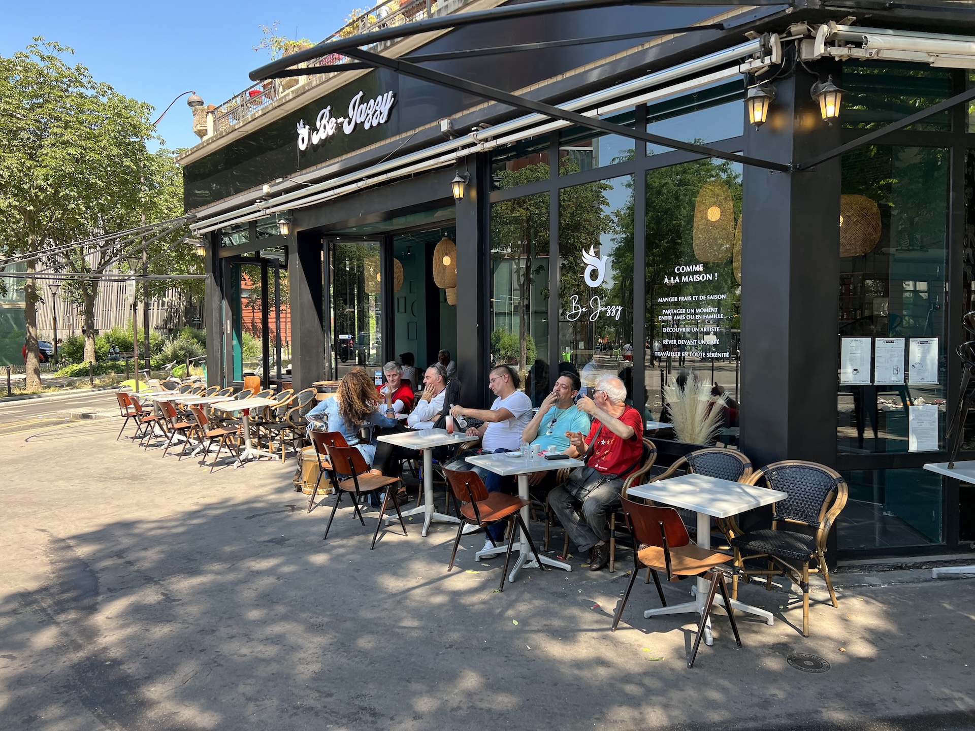 Quel endroit surprenant !! On a passé une très bonne soirée au be jazzy. On y allait pour diner avec une amie, l’endroit est chaleureux, l’accueil est surprenant et souriant ! le repas est coloré, excellent rapport qualité prix ! le service est impliqué et sympathique (ce qui est de plus en plus rare). Il y avait une soirée R&B, ainsi que des stand up d’humoristes en herbe. Nous n’étions pas au courant, quelle belle surprise. La mixité tant culturelle que générationelle ainsi que sa polyvalence, insuflent à cet endroit un air qu’on a envie de respirer plus souvent. Bravo pour le concept, c’est très réussi 😉